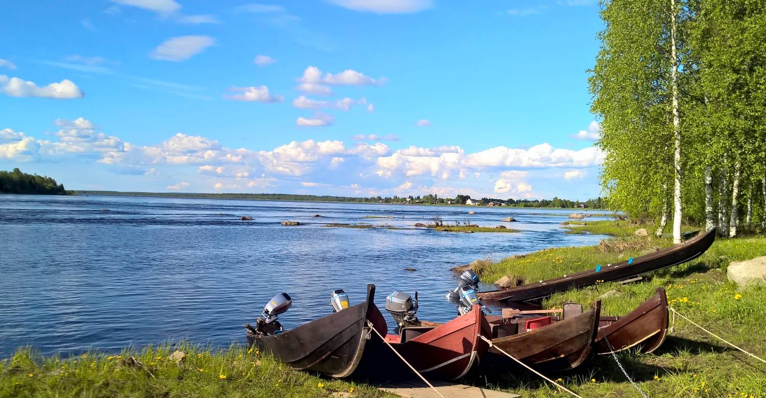 Fishing is done from the shore (for grayling, pike, and perch) or from a rowboat, which allows you to cast your line in deeper areas (where salmon swim). Our guide will show you how to use the boat, provide you with fishing gear if you don't have it (rental fee applies), and show you the best spots for successful fishing. The first two hours will be guided, after which you can continue independently, after purchasing your fishing license (payment on site in cash or by card).